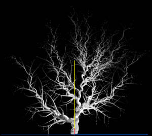 The tree in the reflection was much easier to do, being an imaginary species, right from "Sleepy Hollow". Here is a screenshot of the model within Xfrog.